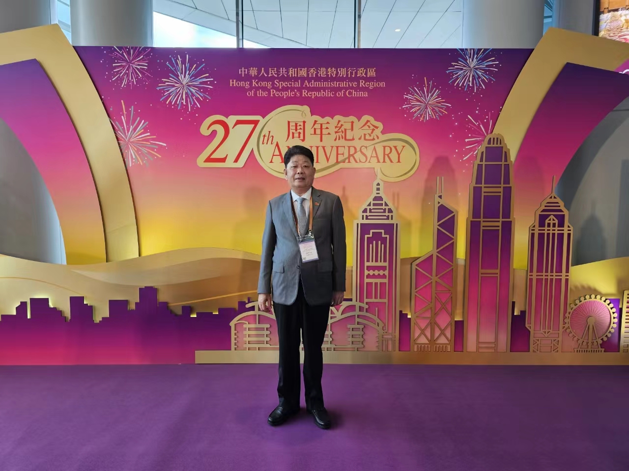 2024年7月1日上午八時(shí),廣東省福建商會(huì)創(chuàng)會(huì)會(huì)長李賢義、會(huì)長許明金、榮譽(yù)會(huì)長李圣潑,受邀請(qǐng)參加在灣仔香港會(huì)議展覽中心金紫荊廣場舉行的“慶祝中華人民共和國香港特別行政區(qū)成立二十七周年”升旗儀式。并參加了隨后舉行的慶祝酒會(huì)活動(dòng)。